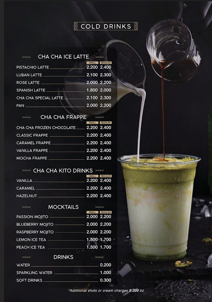 - Signature Beverages: Start your journey with the Cha Cha Tea, a fragrant Matka tea infused with saffron, or indulge in a rich White Mocha Ice Latte.